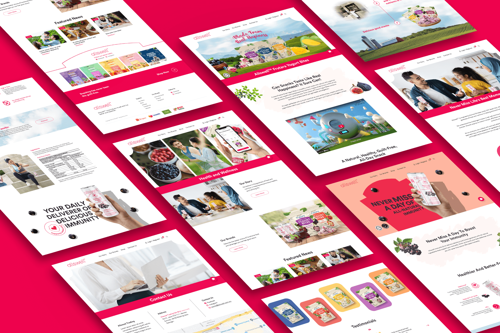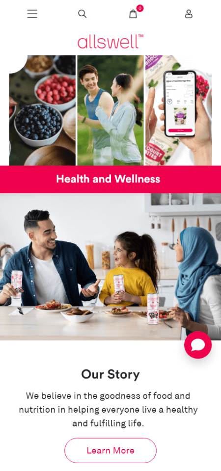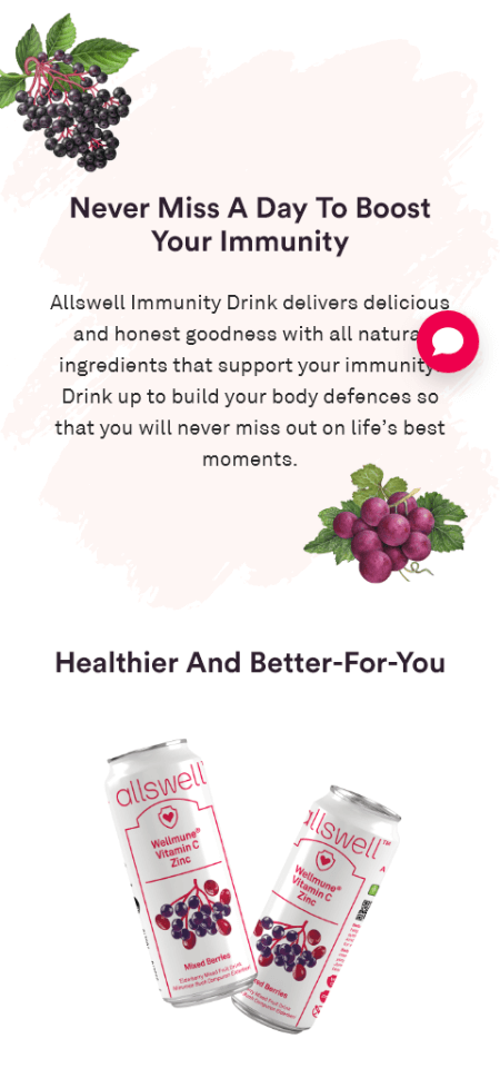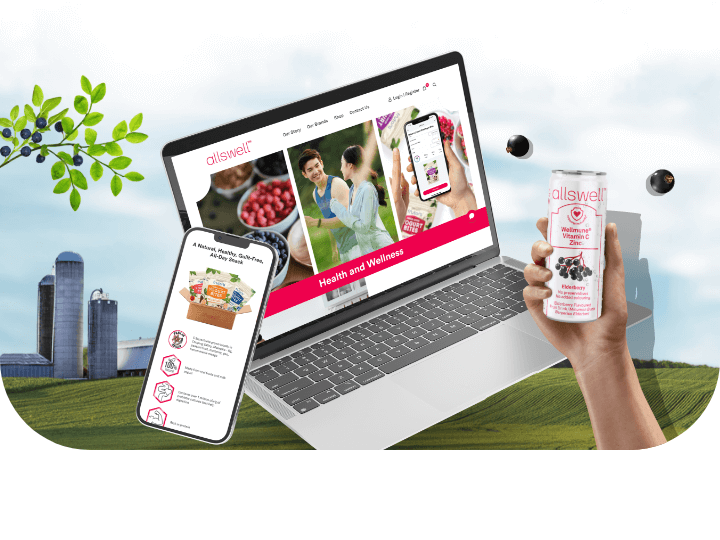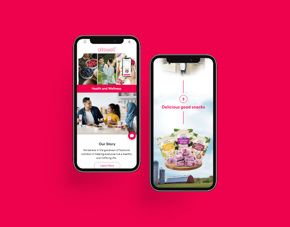 In crafting Allswell’s website, we use a design that radiates a refreshing and healthy vibe, highlighted by the brand’s signature pink. The layout, marked by vibrant visuals, mirrors Allswell’s commitment to simplifying healthy eating. Typography we use ensures clarity, and subtle animations add a touch of dynamism. All in all, we want Allswell website to portray promising high-quality functional food with a refreshing and healthy allure for all moments of the day.