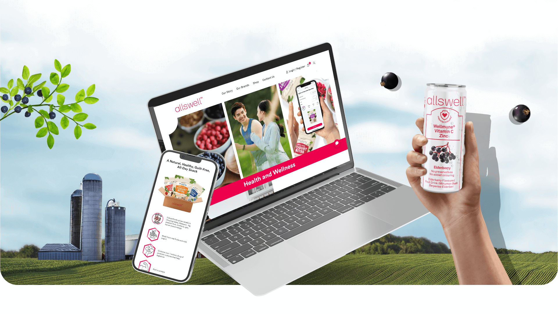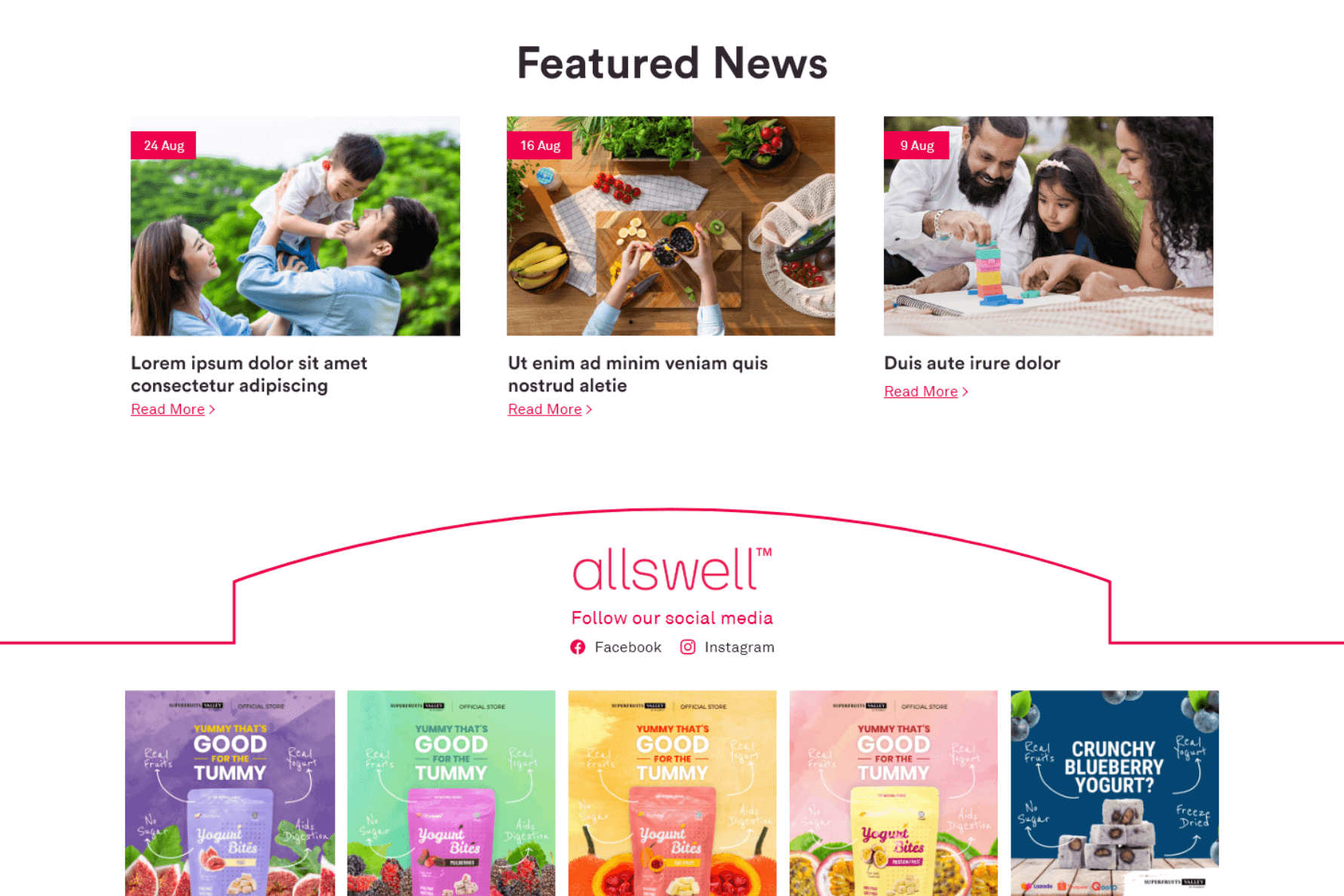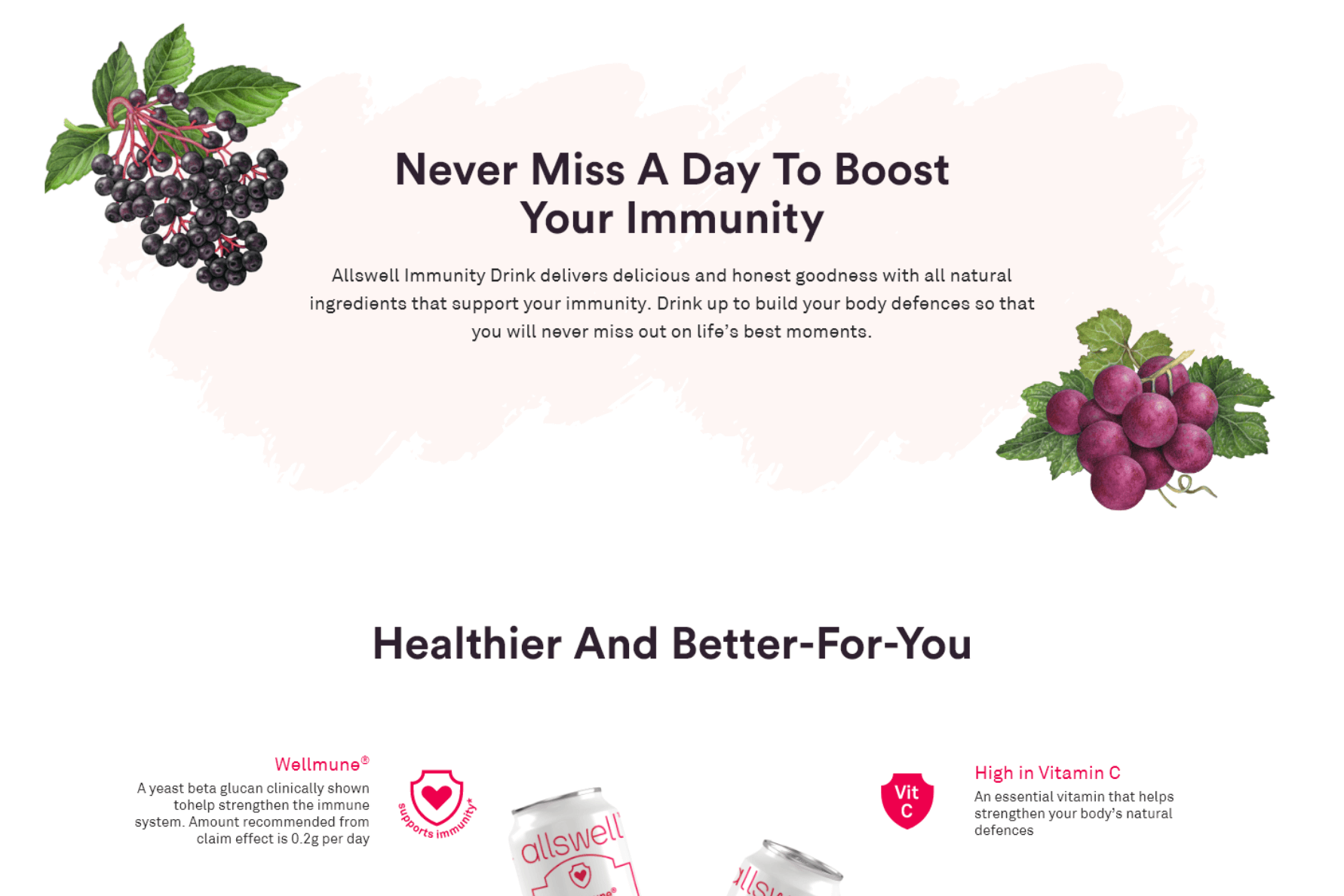 In crafting Allswell’s website, we use a design that radiates a refreshing and healthy vibe, highlighted by the brand’s signature pink. The layout, marked by vibrant visuals, mirrors Allswell’s commitment to simplifying healthy eating. Typography we use ensures clarity, and subtle animations add a touch of dynamism. All in all, we want Allswell website to portray promising high-quality functional food with a refreshing and healthy allure for all moments of the day.