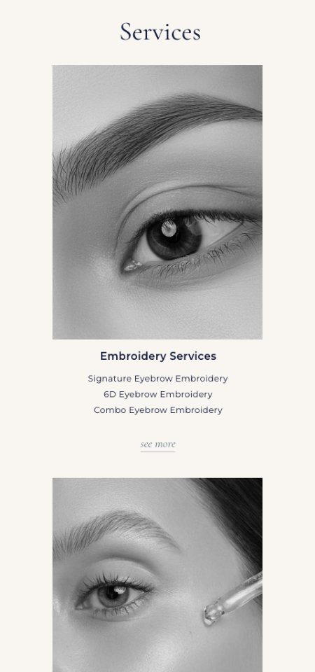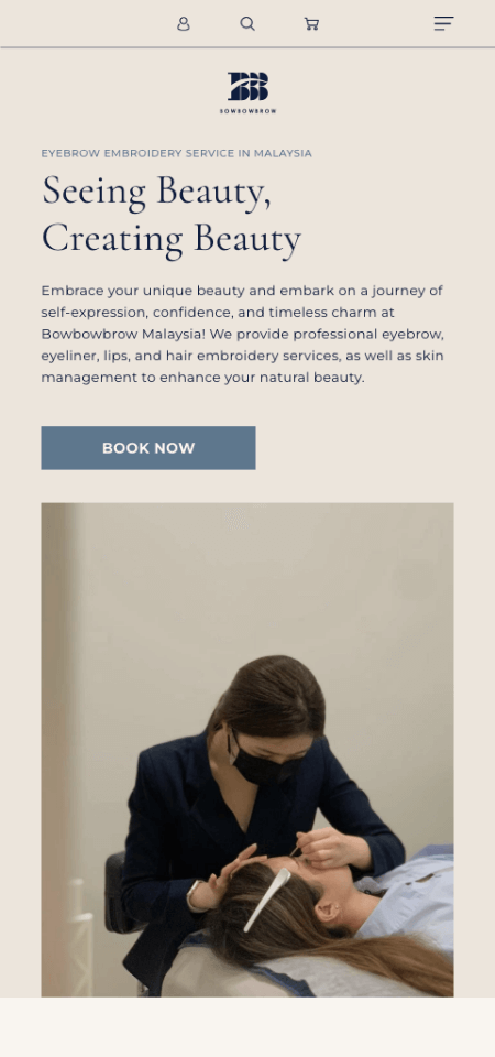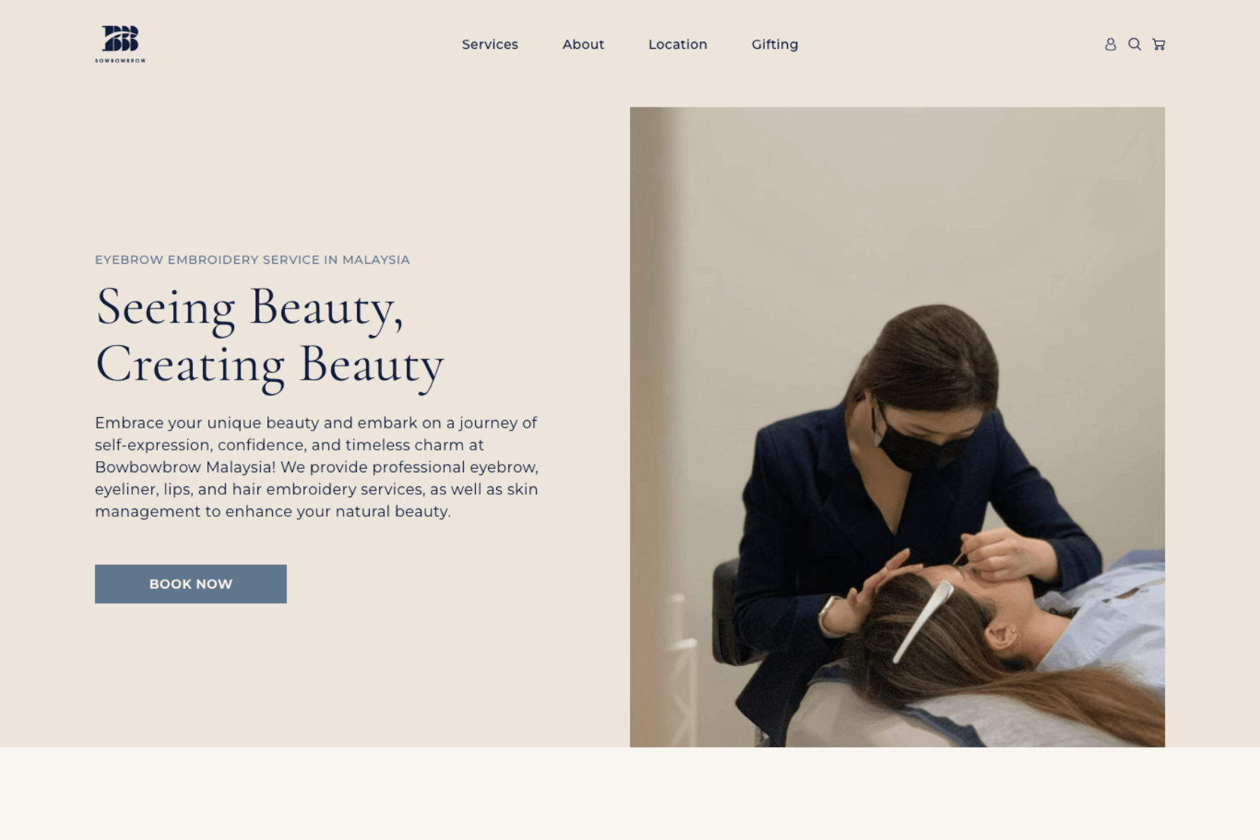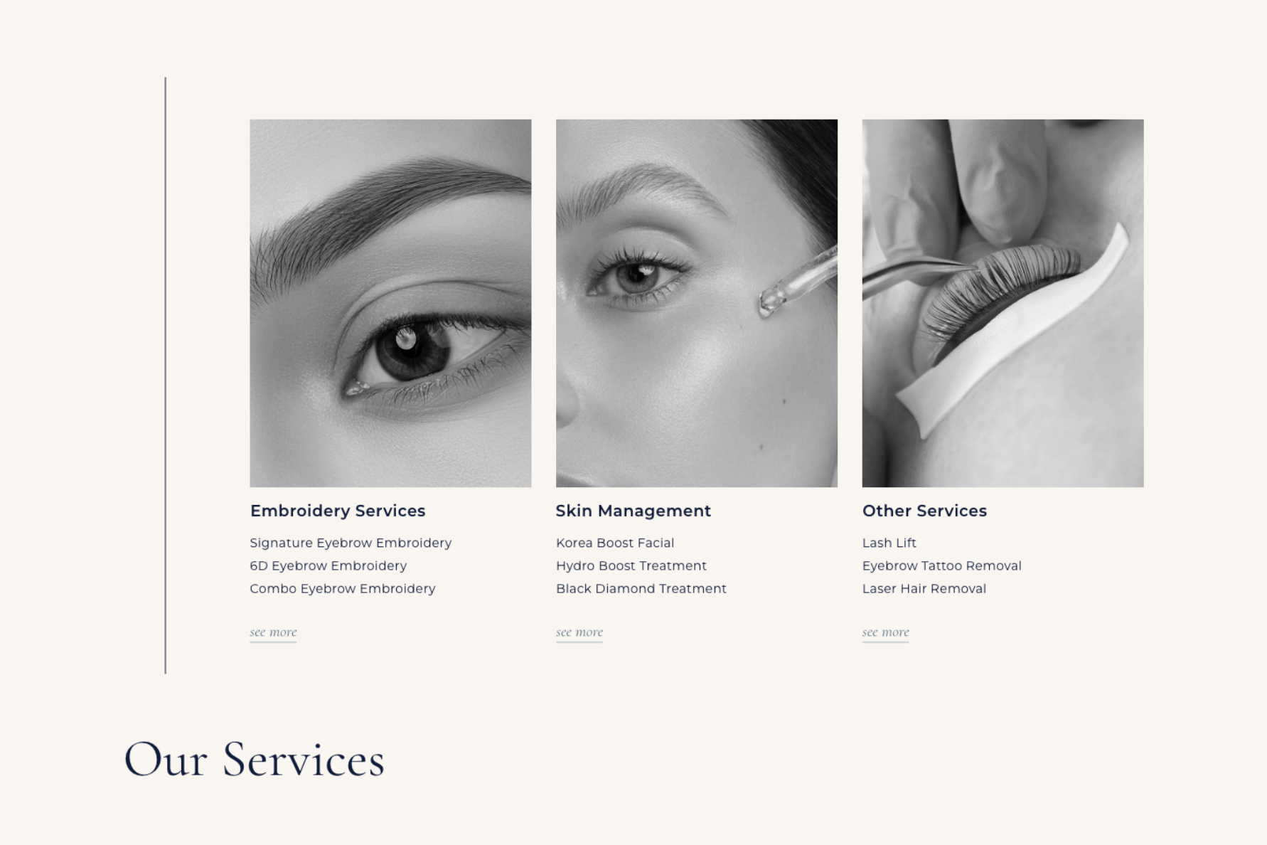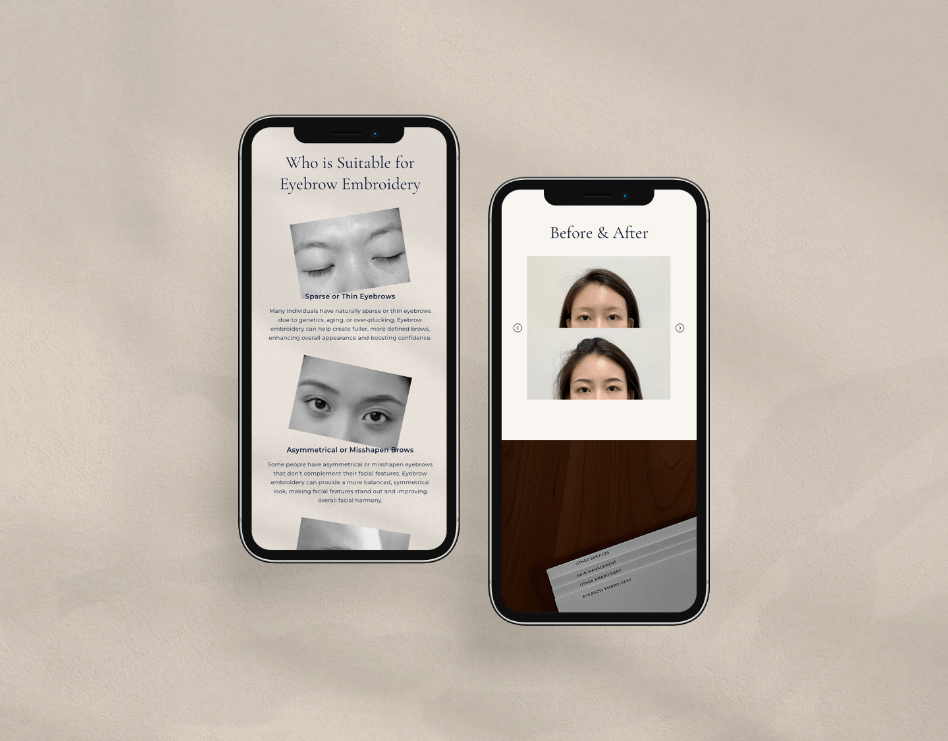 The site prominently showcases their eyebrow embroidery services, complete with detailed service descriptions and pricing, making it easy for potential clients to explore their offerings. To streamline the customer journey, we integrated a simple appointment booking feature, ensuring that visitors can transition effortlessly from browsing to booking. This approach not only reinforces Bowbowbrow’s branding but also enhances accessibility, allowing their audience to engage with their services conveniently.