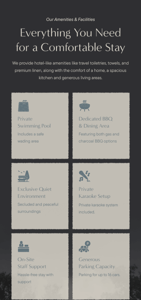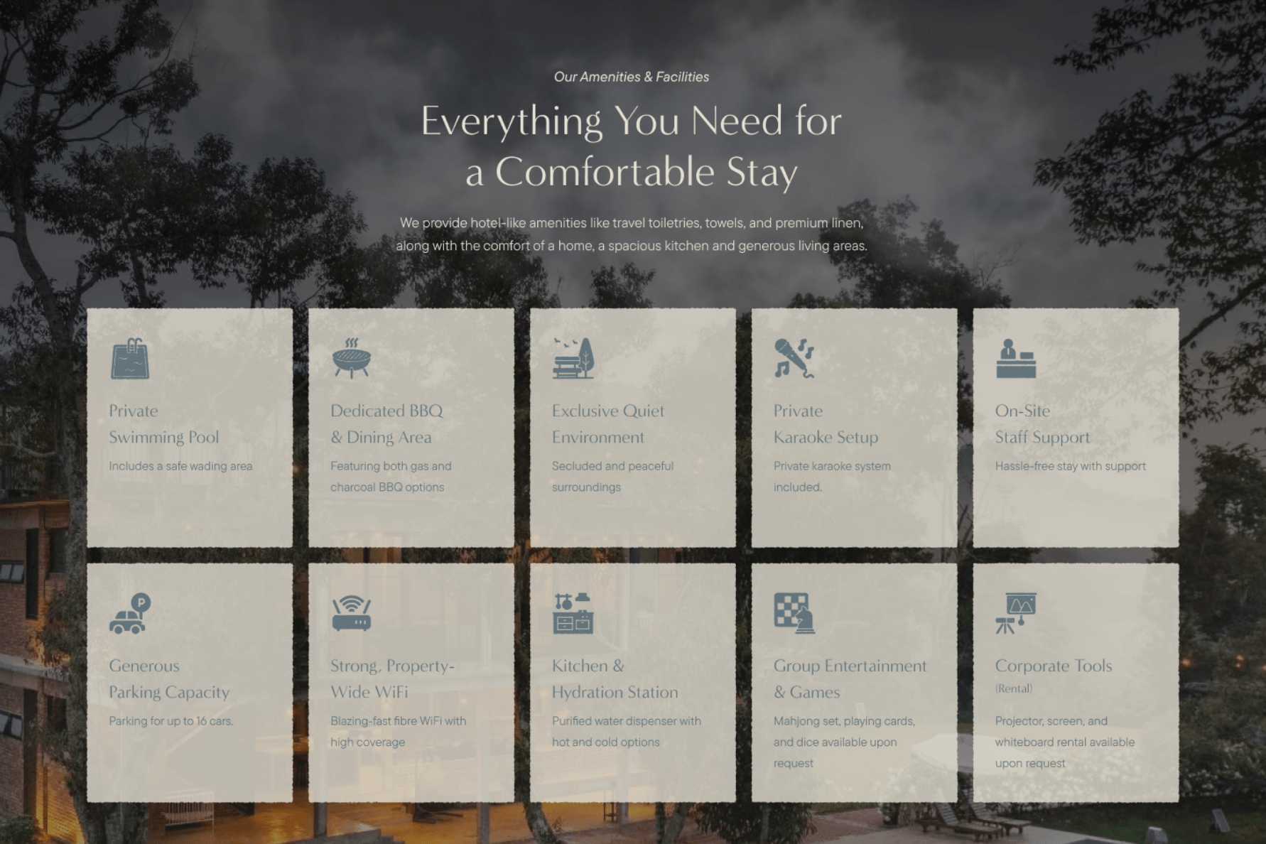Brickhouse Bukit Tinggi is a private villa by Santai Villas, nestled within the lush greenery of Bukit Tinggi. They needed a website that could reflect the charm, privacy, and experience the space could offer.