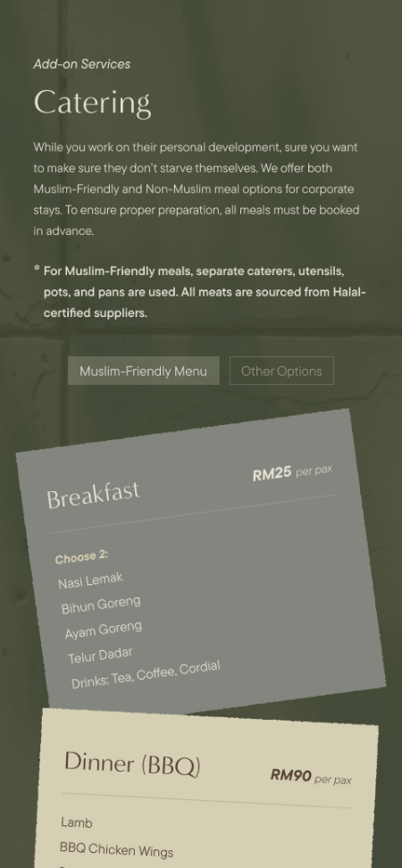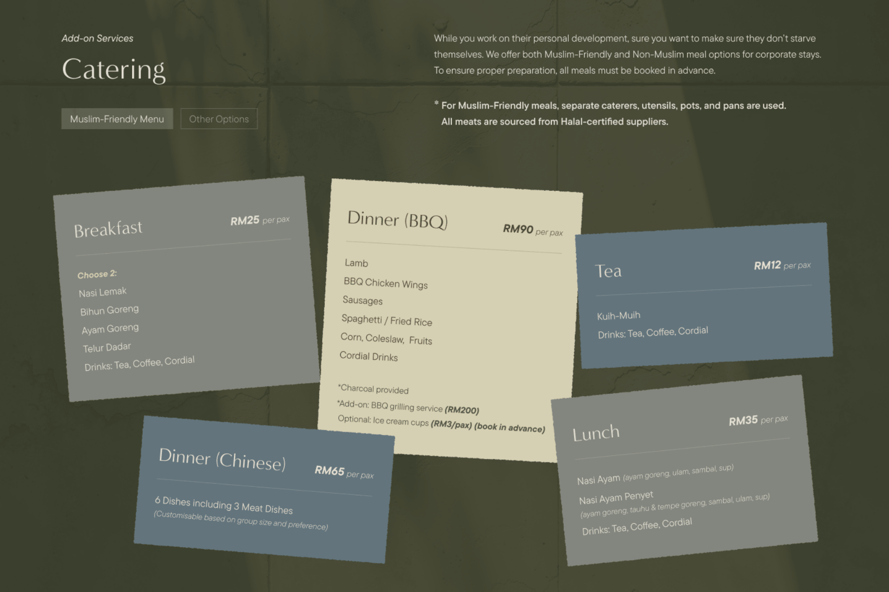 The final website brings together narrative and functionality, allowing visitors to not only explore the space but also imagine themselves within it. More than just an informational website, it positions Brickhouse Bukit Tinggi as a distinctive destination, helping potential guests connect emotionally with the experience and confidently plan their stay or events.