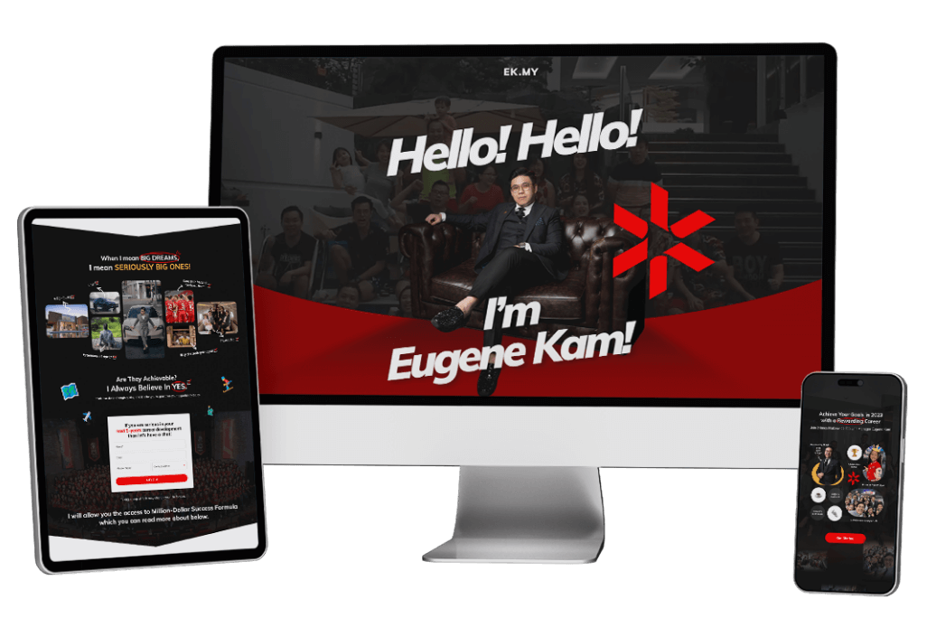 EK.my became the main platform to turn interested individuals into qualified leads. We designed a long-form landing page with engaging copy to attract and convert visitors. Unlike the typical dull and static landing pages, EK.my has a youthful, interactive, and dynamic design, creating a more inviting and modern experience for users. This helped build a strong first impression, positioning Eugene as approachable while emphasizing the value of joining his team.