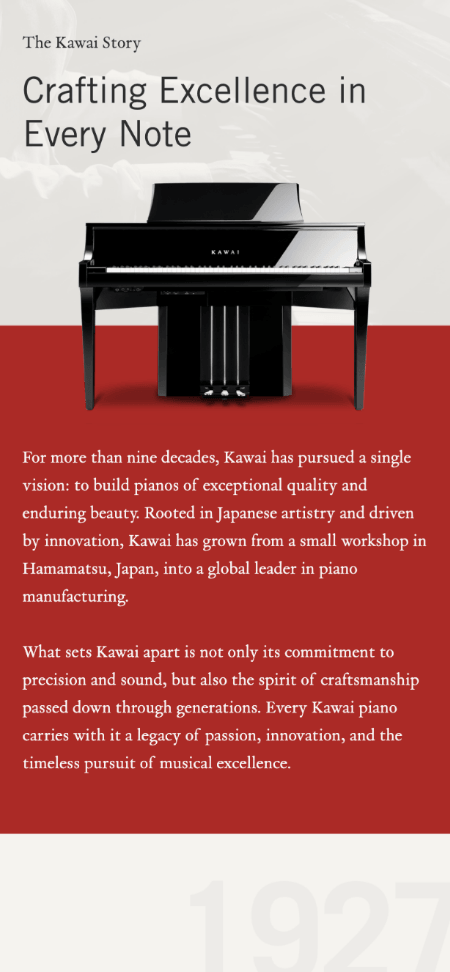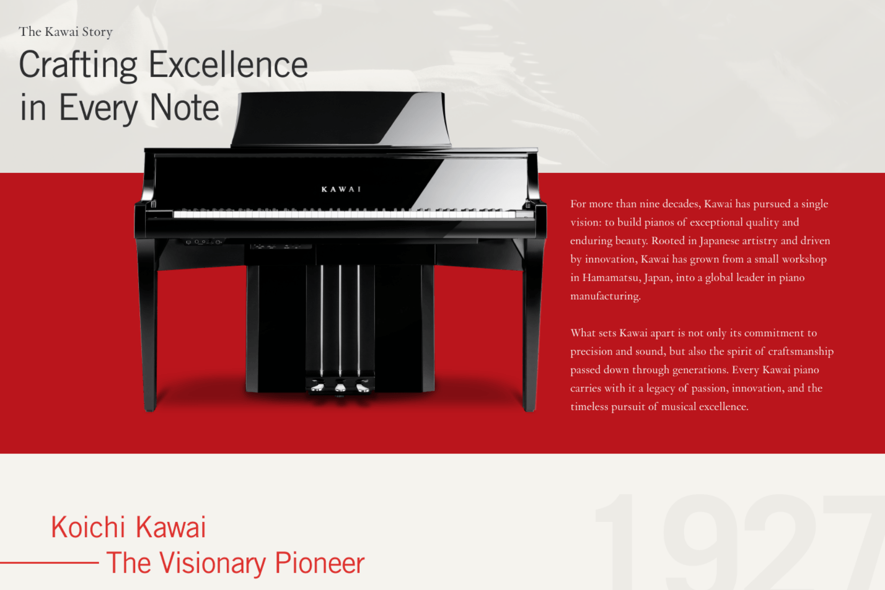 When Kawai Piano, a globally recognised Japanese piano brand known for its heritage and craftsmanship, set out to refine their digital presence, they needed a website that could go beyond product display to communicate their legacy, philosophy, and role in music education.