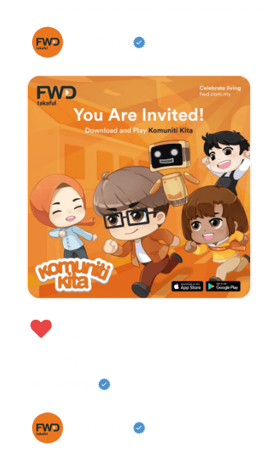 As part of the Komuniti Kita campaign, the Jumix team designed and created an Augmented Reality (AR) Filter game from scratch. After generating attention and awareness through FWD Takafulās social media channels, we directed followers to engage further with the campaign using the AR filter, ensuring they stayed connected and involved.