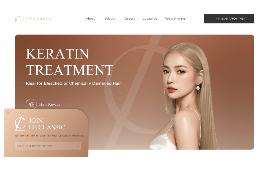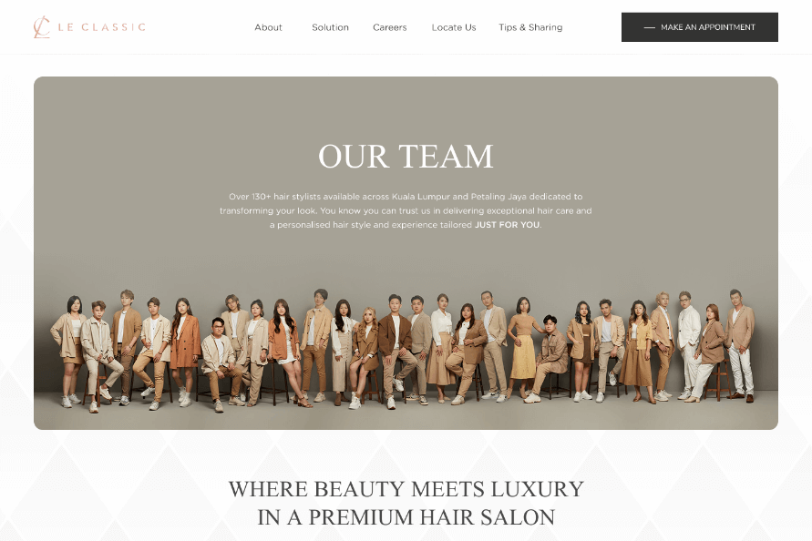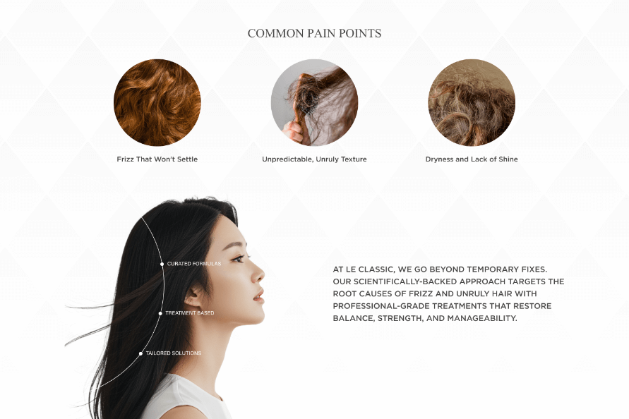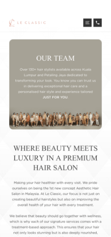 The result is a website that doesn’t just promote services, but immerses visitors in the Le Classic experience, positioning the salon as a go-to destination for those who want beautiful, healthy, and confidence-boosting hair.