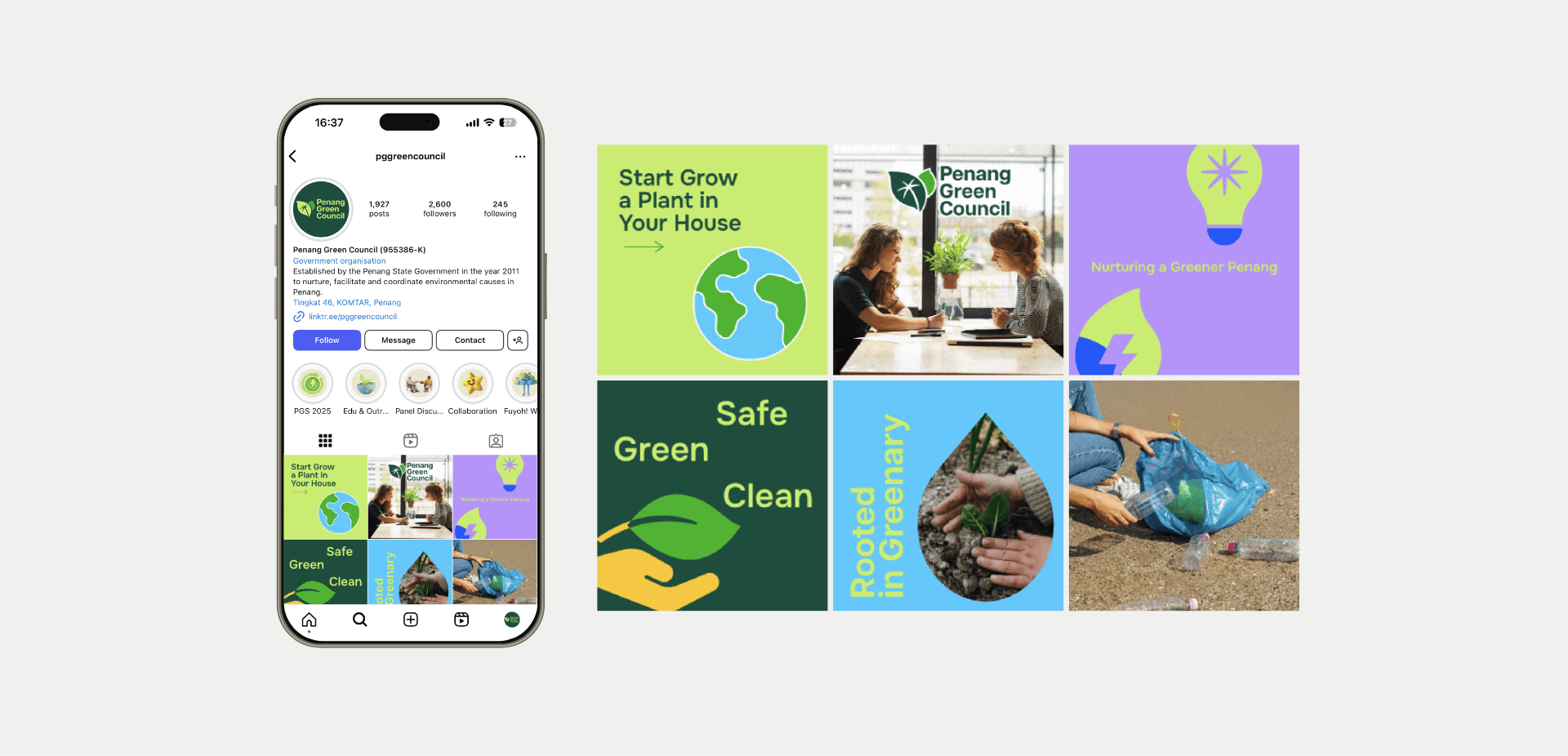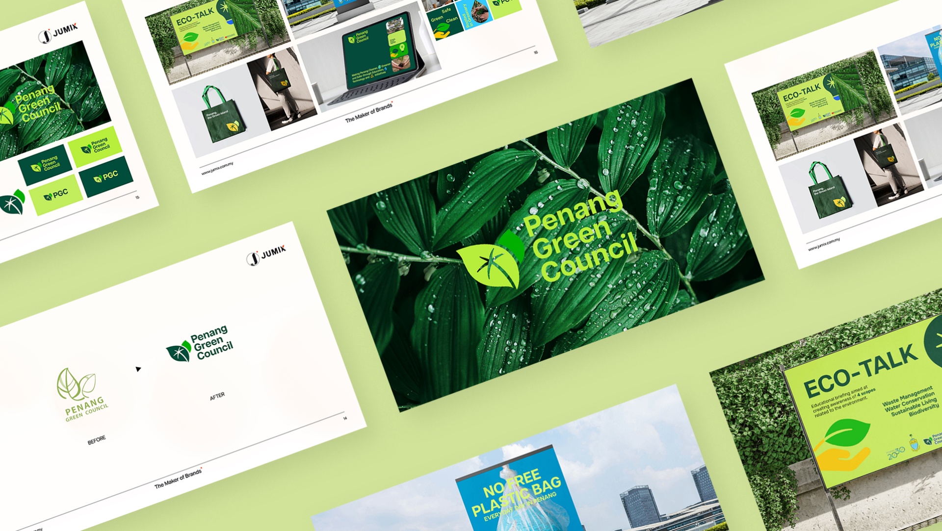 We enhanced Penang Green Council’s signature green by deepening its tone, signifying the maturity and growth of the organization as it transitions from a local initiative to an entity with a stronger presence on the international stage. This refined green anchors the brand in sustainability and environmental leadership.