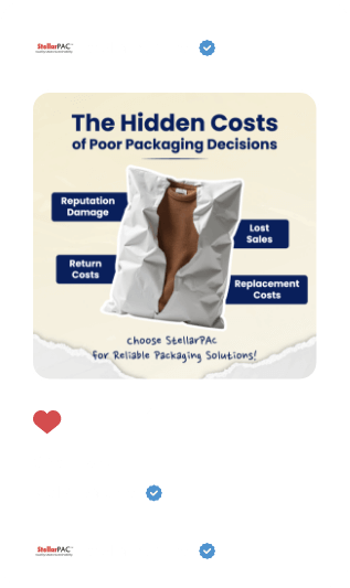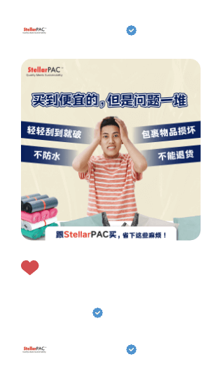Starting from scratch with 0 followers on StellarPac’s Facebook and Instagram pages, we knew our first task was to grow their audience and establish trust. We focused on creating educational content to address common market misconceptions, particularly the belief that Chinese poly mailers were always cheaper. We aimed to break this misconception by highlighting that StellarPac’s products not only offered superior quality but were also competitively priced.