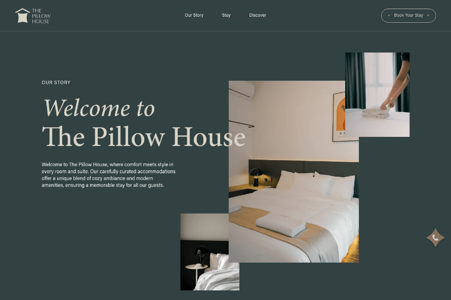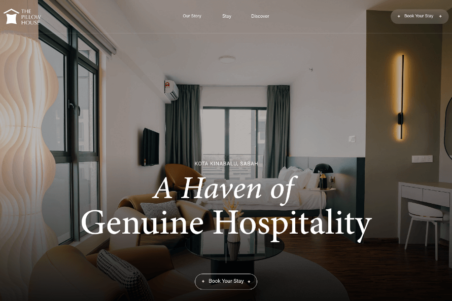 The result is a website that perfectly captures the inviting and serene atmosphere of The Pillow House, setting the stage for a memorable stay from the very first click.