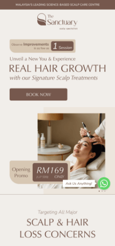 The Sanctuary Scalp is a specialized scalp care centre dedicated to addressing major scalp and hair loss concerns through personalized treatments in a serene, private setting. With a strong focus on results, their signature treatment is backed by a bold promise, up to 8x hair growth, giving clients renewed confidence in their hair and scalp health.