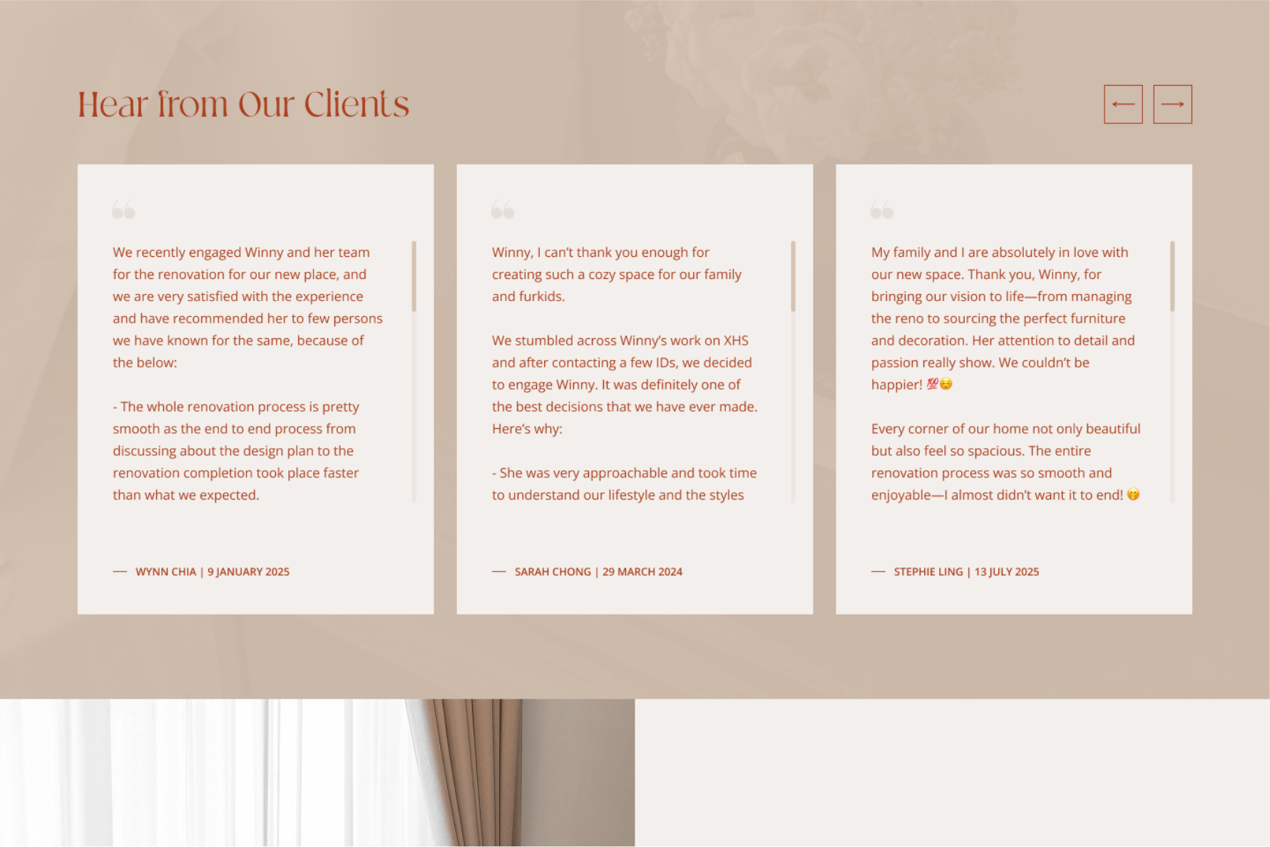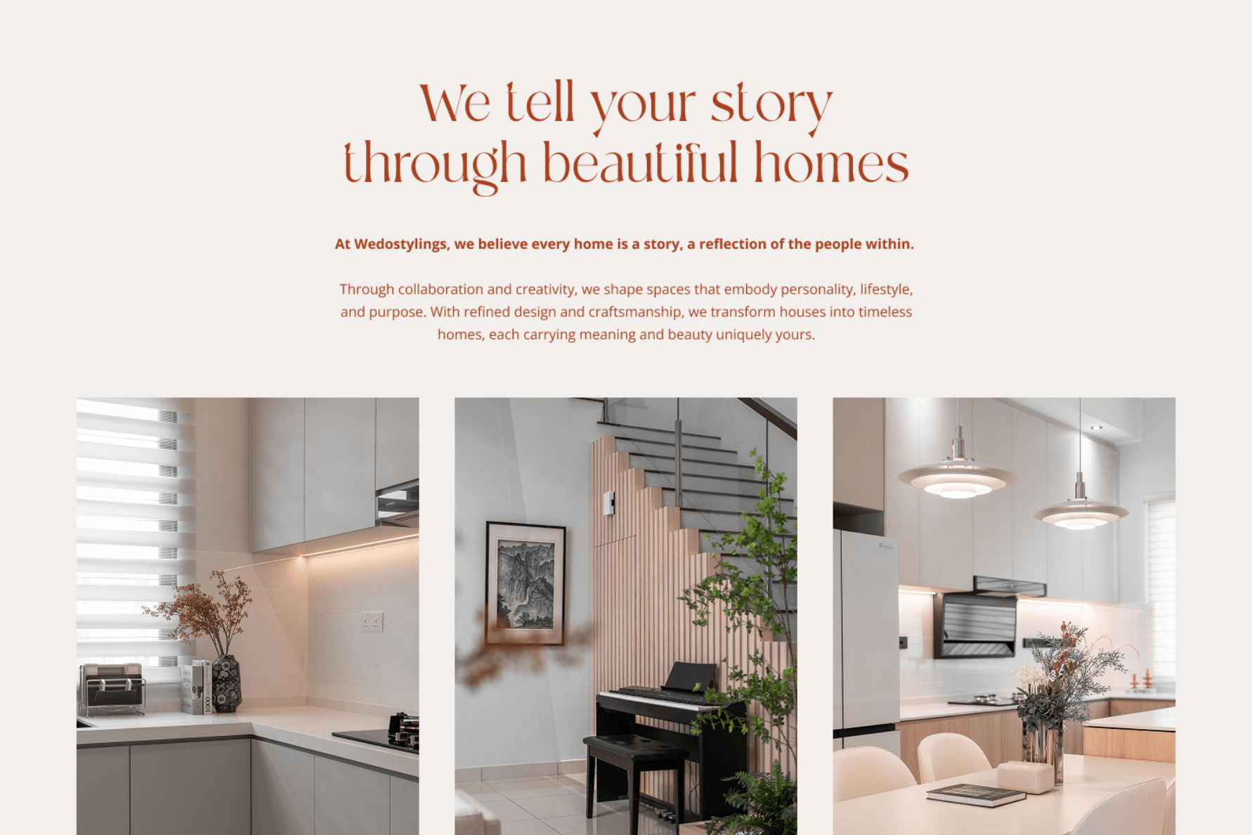 Wedostylings has built a strong reputation for transforming spaces with character, warmth, and modern sensibility. As their brand grew, so did the need for a digital presence that truly reflected who they are, beyond third-party platforms like Qanvast. They wanted a space that showcased their craft with clarity, elegance, and personality.