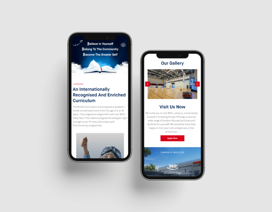 The BXCL website underwent a complete overhaul to reflect the prestige and quality of this international school. We designed the website with the intended parent audience in mind, and ensure the website instills trust and confidence, portraying BXCL as a dependable and welcoming place for their children’s education.
