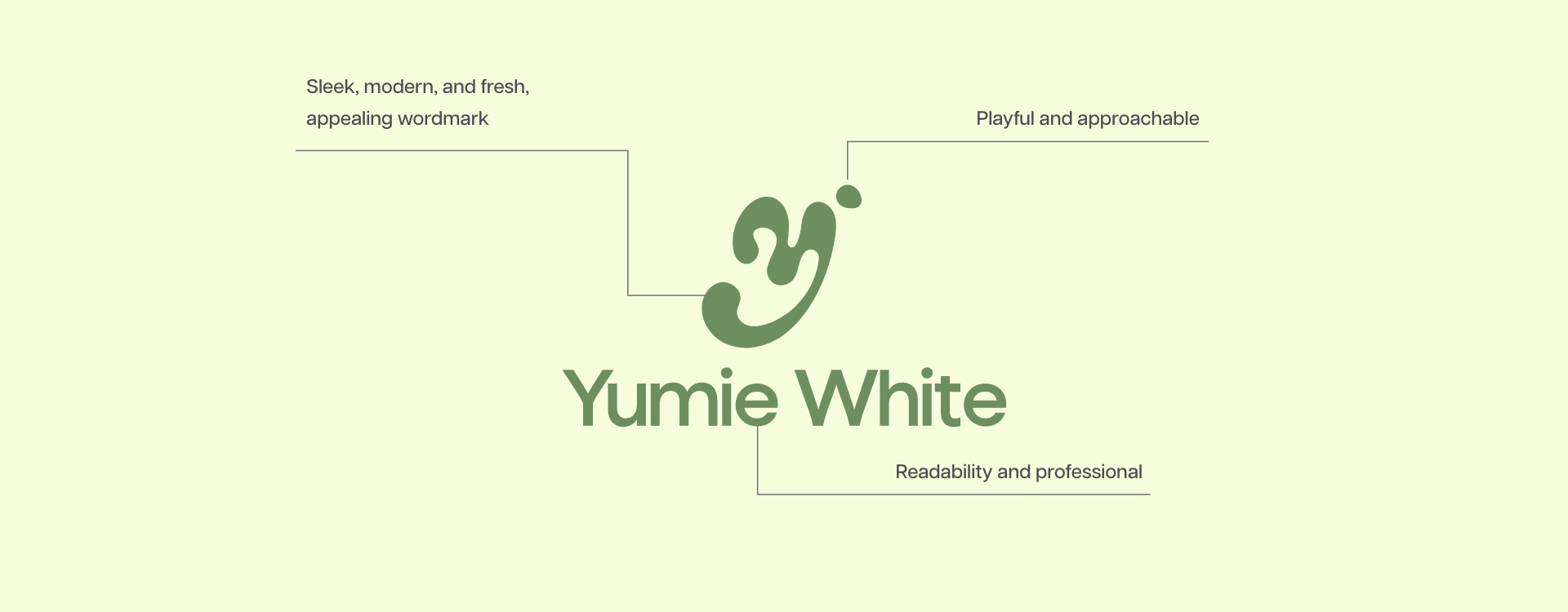 The Yumie White logomark is a harmonious blend of icon and wordmark, designed in both vertical and horizontal orientations. The icon mimics the fluid form of a cream, conveying the essence of skincare. Complementing this, the wordmark is sleek, modern, and fresh, appealing to a youthful audience. Its readability and professional appearance align perfectly with the playful and approachable nature of the icon, making the brand both inviting and credible.