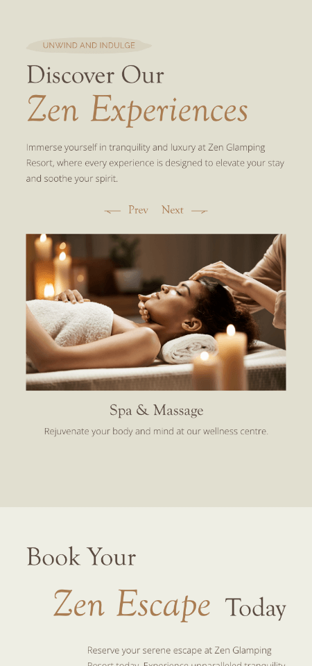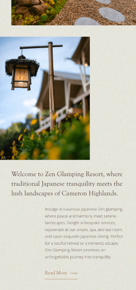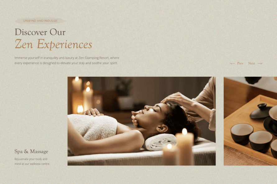 We built the Zen Glamping Resort website from the ground up, ensuring that every aspect of the design exuded a sense of calm and relaxation. The goal was to make visitors feel at ease from the moment they land on the site, much like how they would feel upon arriving at the resort itself. We wove in elements of luxury and sophistication, making it clear that this is a destination for those who value both peace and premium experiences.