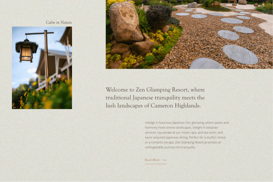 The website was designed to appeal to those planning a soulful retreat or a romantic getaway, highlighting the bespoke services and serene surroundings. Whether visitors are looking to escape with family, friends, or a special someone, the site sets the stage for the unforgettable experience that awaits at Zen Glamping Resort.