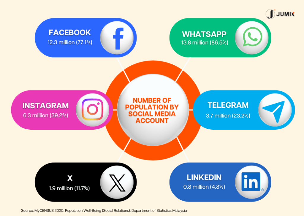 - 12.3 million of Malaysian internet users are on Facebook (Department of Statistics MyCensus 2020).