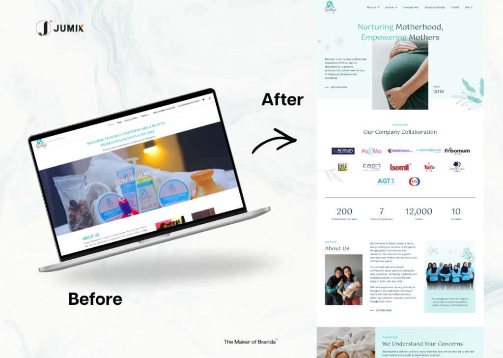 For Suraya Mothercare, we redesigned the website to simplify confusing content and clearly present their full range of confinement services.